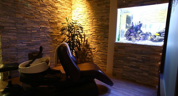 巨大なアクアリウムがある、美容室併設のサロン。非日常空間とアットホームな雰囲気、温かな接客…忙しい毎日から解放され、心からリラックスできます。